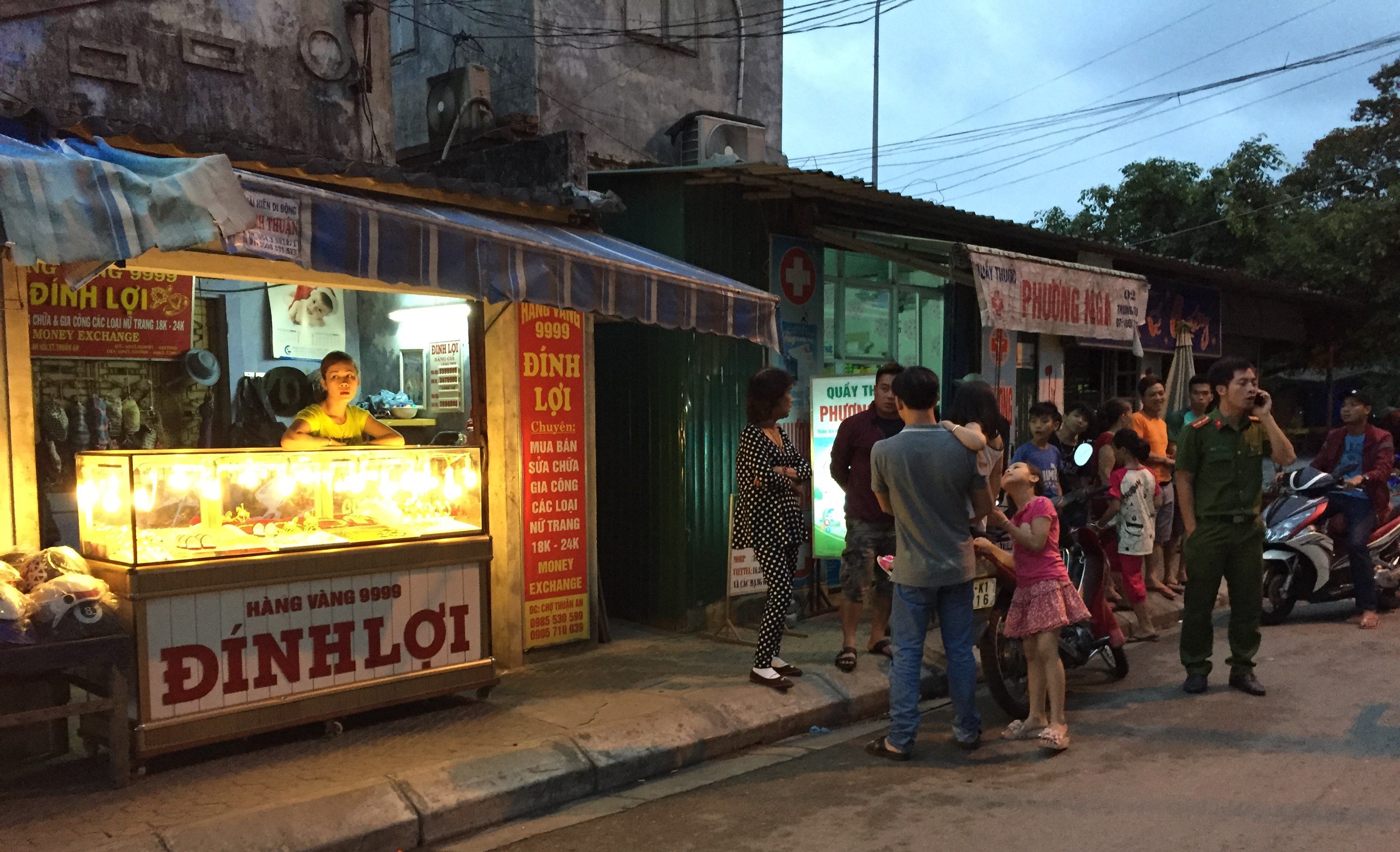Theo lời anh Đính, khoảng 16h15 cùng ngày, khi anh này đang đứng bán hàng một mình thì có một nam thanh niên đi xe gắn máy hiệu Exciter, mặc áo mưa, ghé vào và hỏi xem một số mẫu vàng để làm quà cưới.