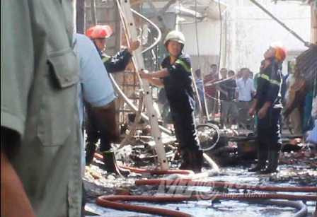 Ghi nhận tại hiện trường hơn 6 xe máy bị cháy rụi còn trơ khung nằm ngổn ngang trên măt đường, nhiều tường nhà, gạch đổ sập. Đám cháy đã làm thiêu rụi cháy xém 7 căn nhà liền kề. Rất nhiều vật dụng đồ đạc có giá trị đã bị thiêu rụi cháy đen.