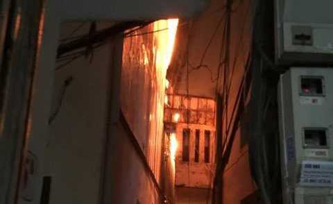 Do nằm trong ngõ nên vụ cháy nhanh chóng lan sang nhiều ngôi nhà sát bên cạnh Ảnh: CTV