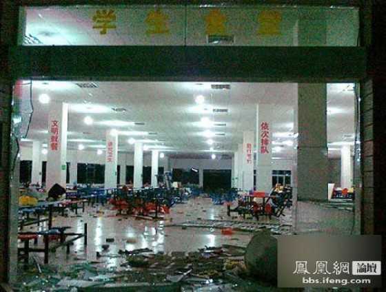Đến 10 giờ 50 phút cùng ngày, các học viên đã tập hợp thành đám đông khoảng 300 người đến khu vực căng tin, một số sinh viên quá kích động đã đập phá kính cửa sổ, cửa ra vào, bàn, ghế và yêu cầu trường cho một lời giải thích.
