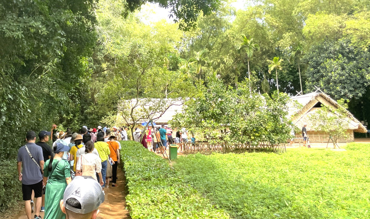 Mặc dù lượng khách đổ về rất đông, song để vừa đảm bảo tính tôn nghiêm, trật tự, vừa đảm bảo thuận tiện cho du khách khi về thăm quê Bác, các cán bộ trong Ban quản lý khu di tích đã tăng cường, hướng dẫn cho người dân.