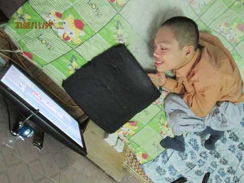 Khó khăn trong sinh hoạt nhưng Đỗ Hà Cừ vẫn tự học chữ, lên mạng.
