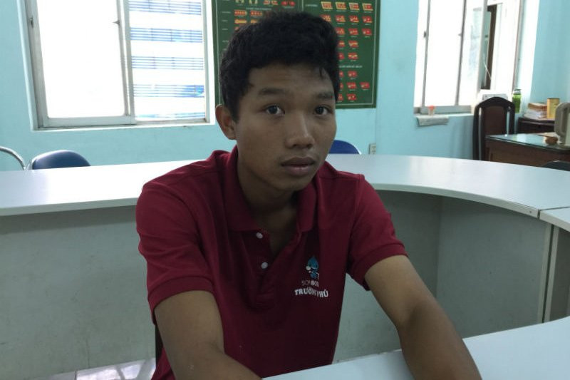 Nghi can Huỳnh Tuấn Khải tại cơ quan công an.