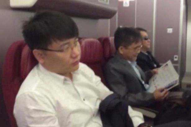 Hai người đàn ông được cho là Hyon Kwang-song (đeo kính đen) và Kim Uk-il (áo trắng) trên chuyến bay về Triều Tiên.