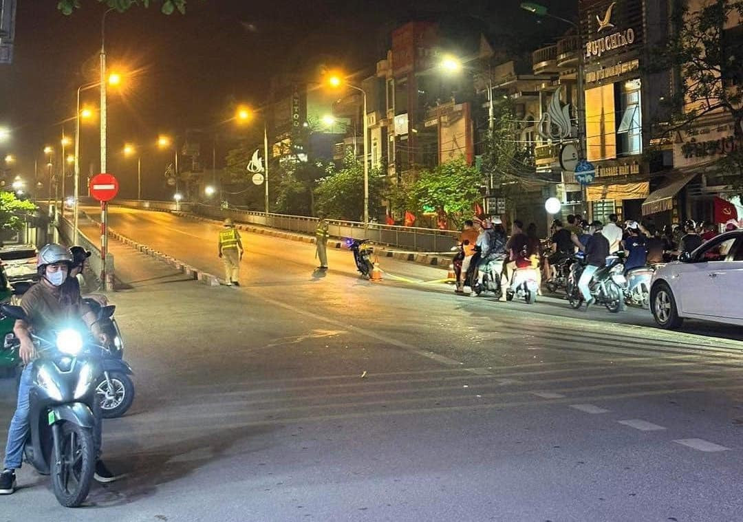 Tối 25/6, cảnh sát phong tỏa khu vực cầu Đò Quan - nơi nghi phạm nhảy xuống sông.