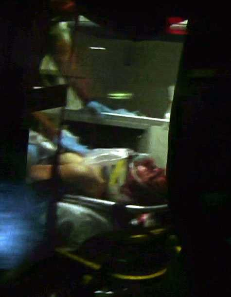 | Dzhokhar Tsarnaev, người bê bết máu, được đưa lên xe cứu thương |