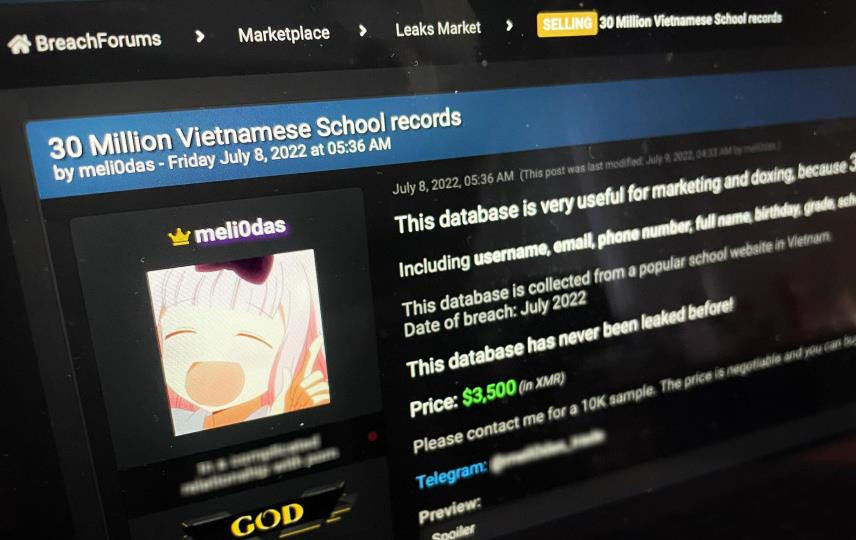 Ngày 8/7, bài rao được thành viên "meli0das" đăng trên một diễn đàn hacker. Người này khẳng định thu thập được lượng dữ liệu lớn này "từ một website trường học phổ biến ở Việt Nam".