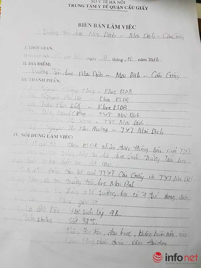 Sau đó, UBND quận Cầu Giấy cũng đã đã có báo cáo sự việc với UBND thành phố Hà Nội đồng thời chỉ đạo triển khai ngăn ngừa kịp thời tình trạng sốt, nôn mửa của học sinh.