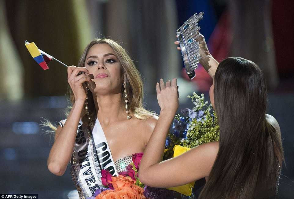 | Cô đội vương miện và vẫy lá cờ Colombia trước hàng trăm triệu khán giả trên toàn thế giới |