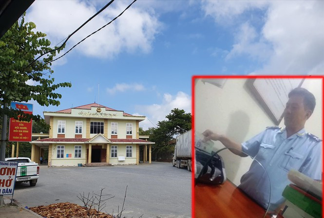 Cửa khẩu quốc tế Tây Trang (ảnh lớn) và hình ảnh ông Huyền nhận tiền luật (ảnh nhỏ, cắt từ clip) .