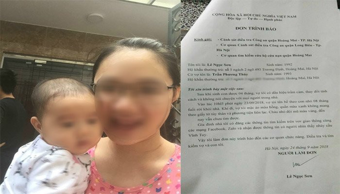 Theo anh Lê Ngọc Sơn (26 tuổi, chồng chị Thùy), sau khi sinh con gái được 4 tháng tuổi, chị Thuỳ có biểu hiện bị trầm cảm. Sáng 23/9, chị Thuỳ bế con gái 7 tháng tuổi rời khỏi nhà và không thấy về. Gia đình tổ chức tìm kiếm khắp nơi, đồng thời báo lên cơ quan chức năng hỗ trợ tìm kiếm nhưng không có kết quả.
