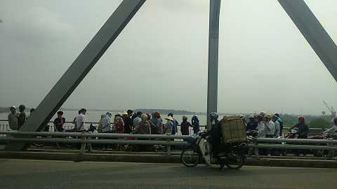 | Người dân hiếu kỳ tập trung ở cầu Bến Thủy |