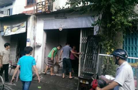 Lửa lớn ngày càng bốc cao, nhà bị khóa cửa từ bên trong nên nhiều người dùng cưa sắt, phá khóa để mở cửa rồi tiến vào bên trong dập lửa.