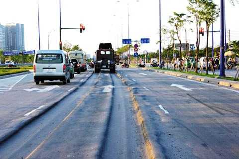 Sau nhiều lần sửa chữa nhưng mặt đường đại lộ Mai Chí Thọ (đoạn từ hầm vượt sông Sài Gòn đến cầu vượt Cát Lái) vẫn còn nhiều chỗ bị lún, lớp bê tông nhựa đường bị trồi lên khiến mặt đường nham nhở, dợn sóng, gây nguy hiểm cho các phương tiện di chuyển.