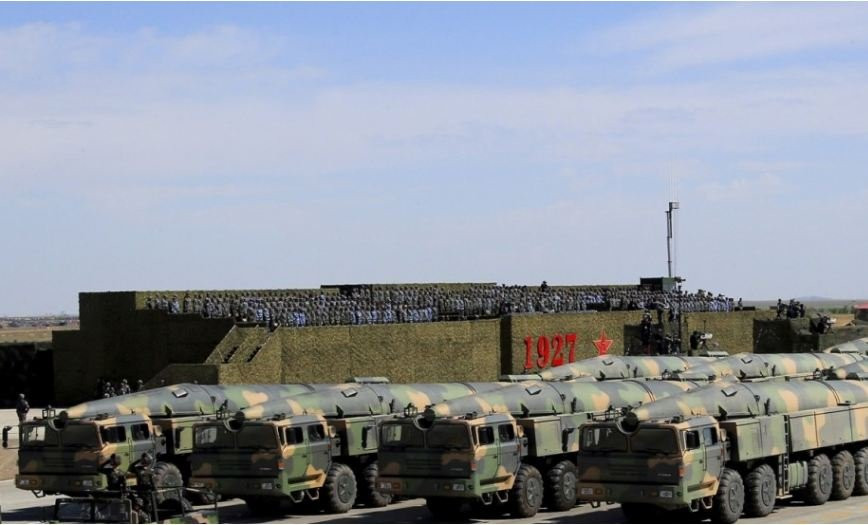 Tên lửa Trung Quốc trong buổi diễu hành kỉ niệm 90 năm thành lập Quân đội Nhân dân. (Ảnh: AP)