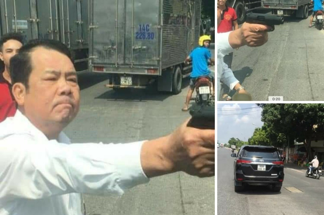 Trưa cùng ngày, mạng xã hội xôn xao hình ảnh người đàn ông đi ô tô rút một vật giống súng đe dọa người đi đường.