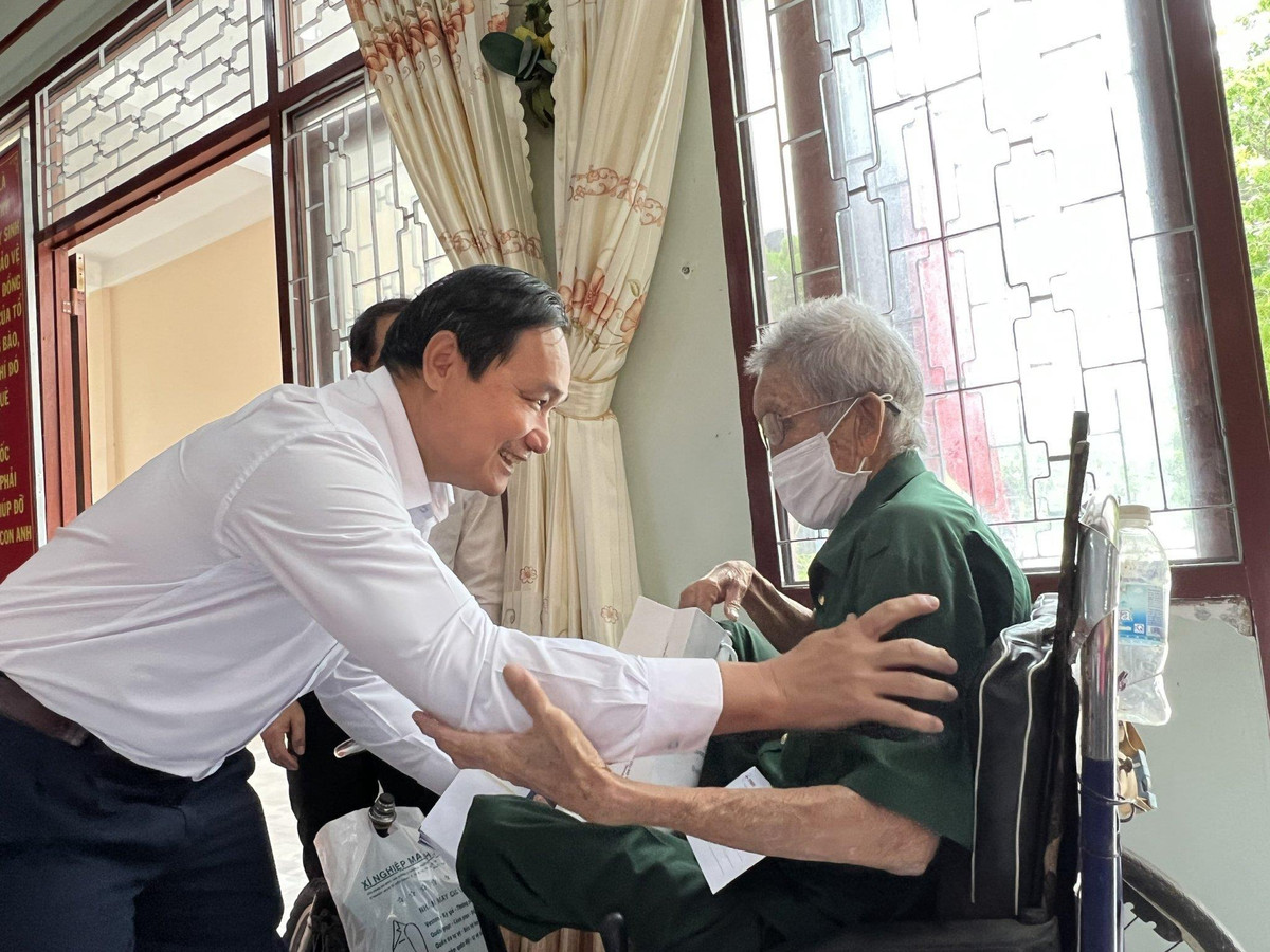 Trực tiếp đi đến tận tay trao các phần quà cho các thương bệnh binh tại hội trường, ông Nguyễn Văn Hợp ân cần chúc mỗi người luôn được mạnh khỏe, an vui, tiếp tục là tấm gương để con cháu noi theo.