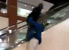 Hai thanh niên bày trò lên thang cuốn trong siêu thị theo kiểu 'ngược đời' và phải lãnh hậu quả sau trò nghịch dại.