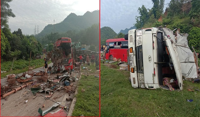 Vụ tai nạn xảy ra ở Mai Châu, Hòa Bình vào ngày 17/6 khiến 3 người chết, 37 người bị thương. (Ảnh: CTV)