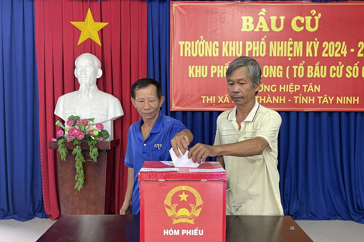 Cử tri khu phố Hiệp Long (phường Hiệp Tân, thị xã Hoà Thành, tỉnh Tây Ninh) bỏ phiếu bầu tổ trưởng dân phố nhiệm kỳ 2024-2029.