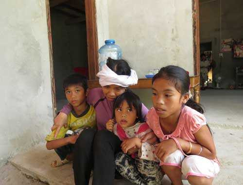 | Sau đám tang chồng, chị Hòe chỉ biết ôm 3 đứa con mà than thân trách phận. Ảnh: Khampha.vn |
