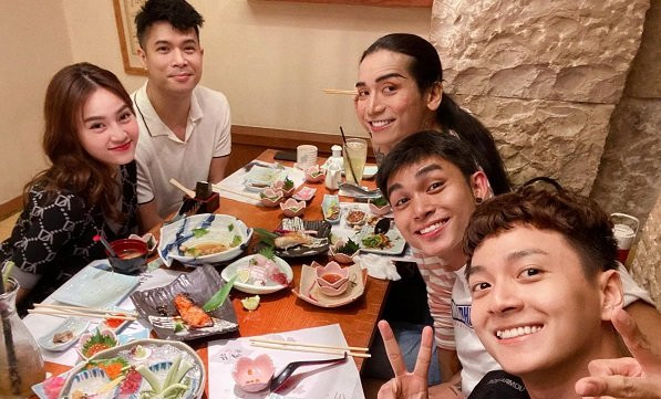 5 thành viên của "Running Man Việt Nam" tụ tập ăn uống, trò chuyện với nhau.