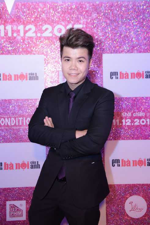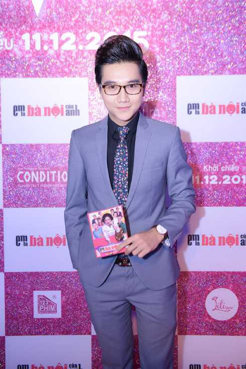 Trong buổi ra mắt "Em là bà nội của anh", Ngô Kiến Huy nhí nhảnh tạo dáng bên Miu Lê.