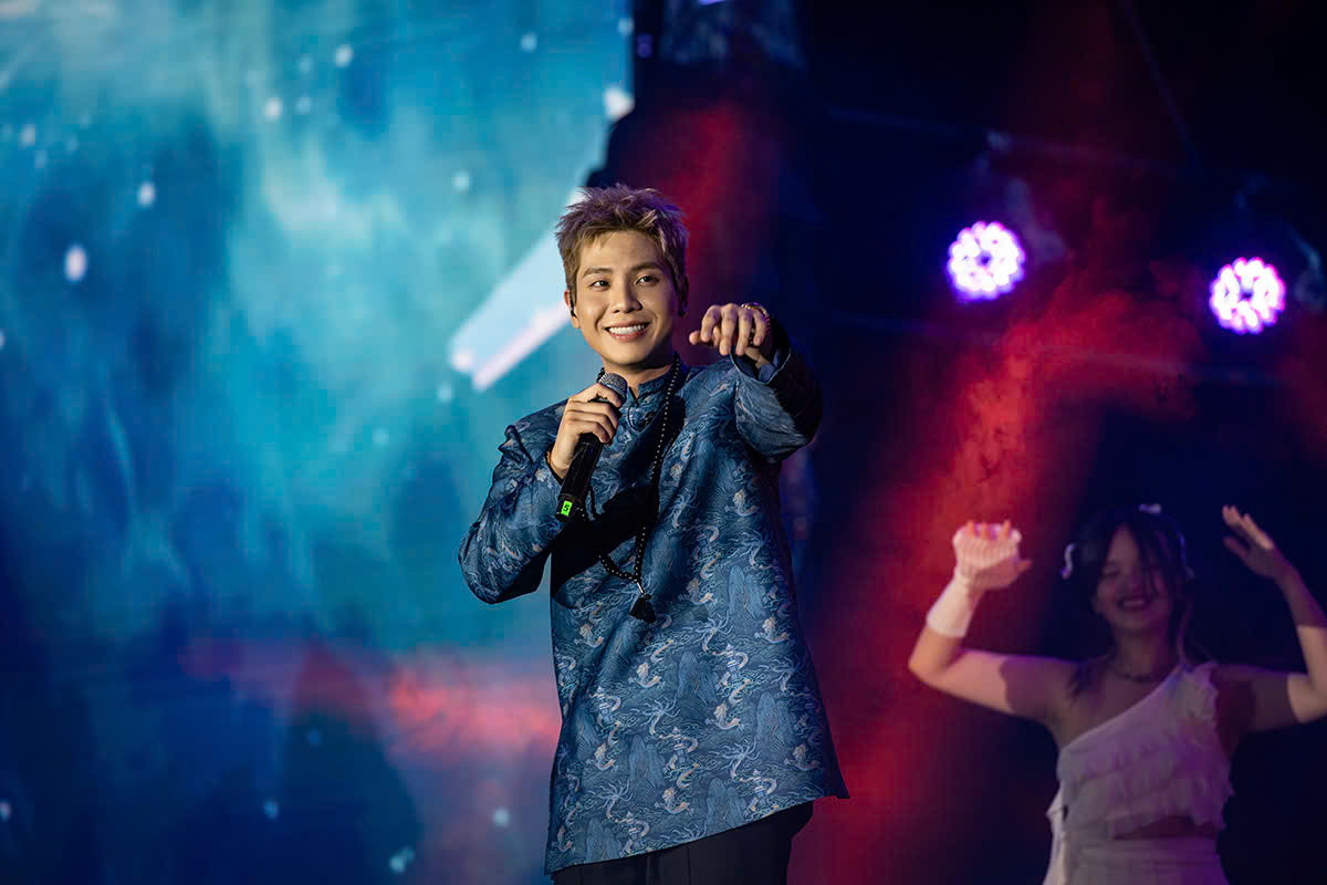 Quân A.P làm bùng nổ sân khấu với loạt hit như Bông hoa đẹp nhất, You are my crush... đốn tim các "nàng thơ" Thăng Long.