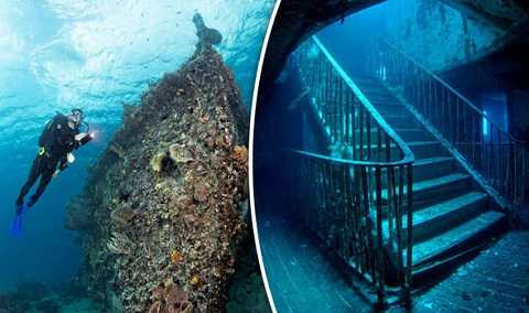 | Xác một con tàu được phát hiện dưới đại dương. |