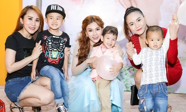 Đến chung vui với Thu Thủy và bé Henry ngoài gia đình bên ngoại là những người bạn thân thiết với nữ ca sĩ: gia đình Ưng Hoàng Phúc, nhạc sĩ Nguyễn Minh Cường… và đặc biệt là 2 mẹ bỉm sữa Ngọc Châu, Anh Thúy - cựu thành viên của nhóm Mây Trắng cũng đưa con trai đến buổi tiệc.