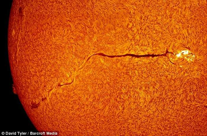 Mặt trời như quả cầu lửa với những vệt sáng đang hoạt động