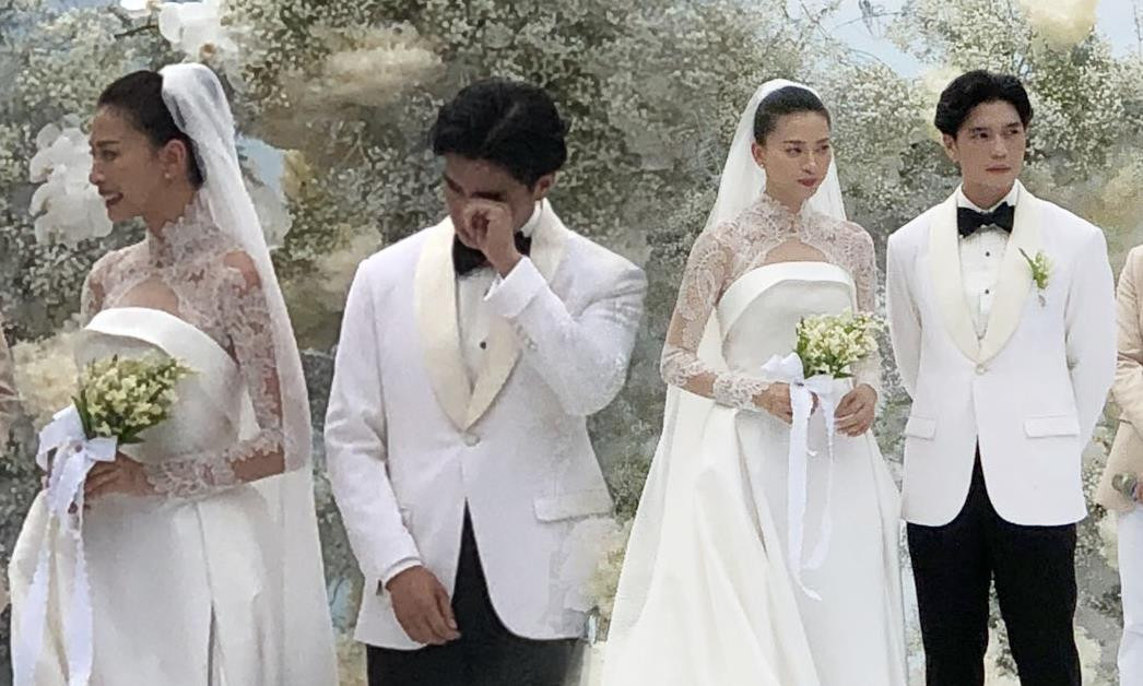 Chú rể Huy Trần xúc động bật khóc trong đám cưới.