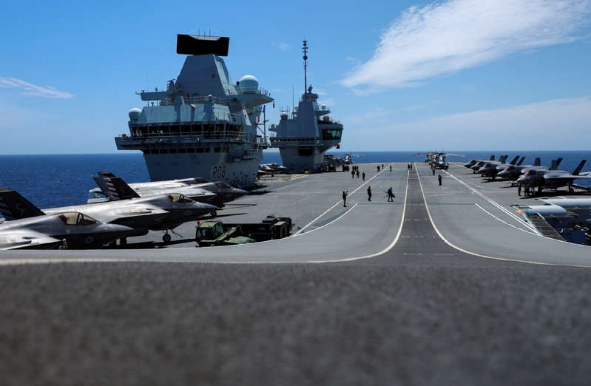 Tàu sân bay Anh HMS Queen Elizabeth tập trận cùng NATO ở Địa Trung Hải trước chuyến đi tới Biển Đông. (Ảnh: Reuters)