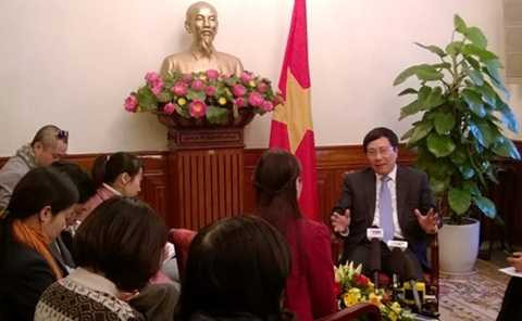 | Phó thủ tướng, Bộ trưởng Ngoại giao Phạm Bình Minh trong cuộc gặp gỡ báo chí vào ngày cuối cùng của năm 2013. Ảnh: Trường Sơn/ Vnexpress |