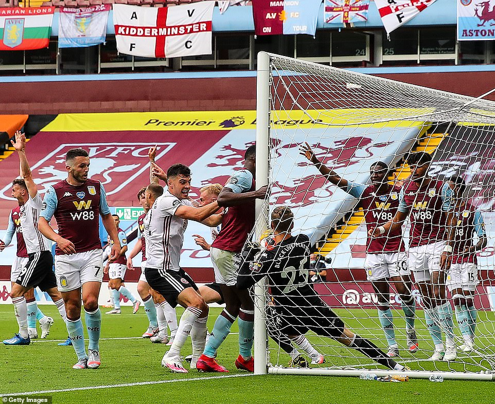 Tình huống hi hữu xảy ra ở trận đấu giữa Aston Villa và Sheffield United. Sau một pha bắt bóng, thủ môn đội chủ nhà Orjan Nyland bị đồng đội vô tình đẩy vào lùi vào khung thành. Băng hình quay chậm cho thấy toàn bộ quả bóng đã ở phía sau vạch cầu môn.