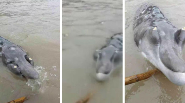 Một số ngư dân cho rằng đây là con cá heo đột biến, trong khi một số khác lại cho rằng đó là cá tầm.