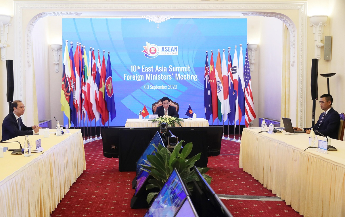 Lời kêu gọi được đưa ra trong khuôn khổ Hội nghị Cấp cao Đông Á chủ trì Hội nghị trực tuyến Bộ trưởng Ngoại giao Cấp cao Đông Á (EAS) lần thứ 10. Tại hội nghị, các nước tham gia EAS nhấn mạnh tầm quan trọng của hoà bình, ổn định, an ninh, an toàn, tự do hàng hải và hàng không ở Biển Đông, là lợi ích chung của tất cả các nước.