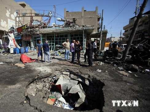 | Hố sâu tạo ra trong vụ đánh bom ở Baghdad |