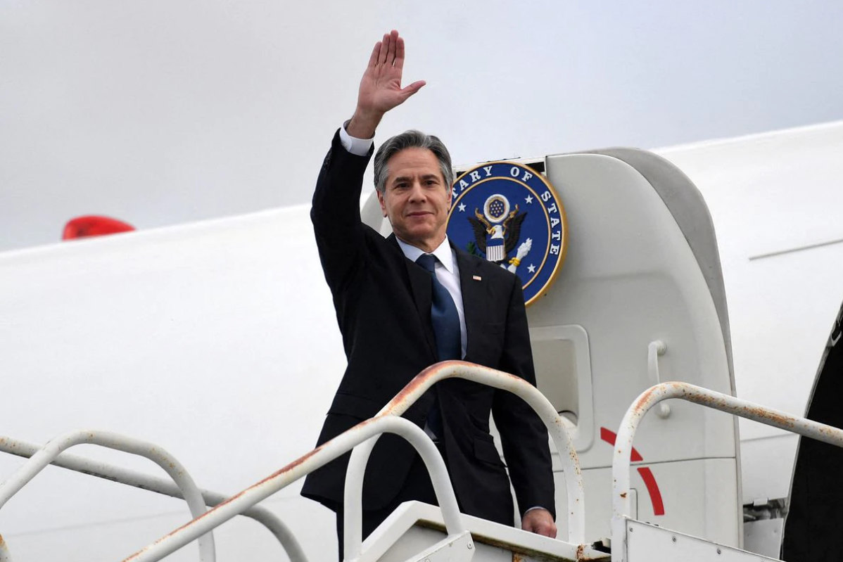 Ngoại trưởng Mỹ Antony Blinken lên máy bay sau hội nghị thượng đỉnh ngoại trưởng G7, trên đường đến Đông Nam Á. (Ảnh: Reuters)