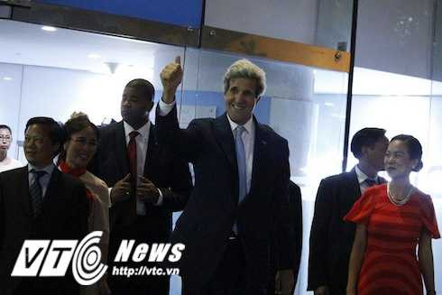 (VTC News) - Ngoại trưởng Mỹ John Kerry và bí thư Thăng được người dân hò reo, xin bắt tay sau khi hai ông kết thúc sự kiện tối 24/5.