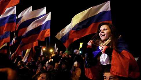 | Người Crưm vẫy cờ Nga sau cuộc trưng cầu dân ý lịch sử |