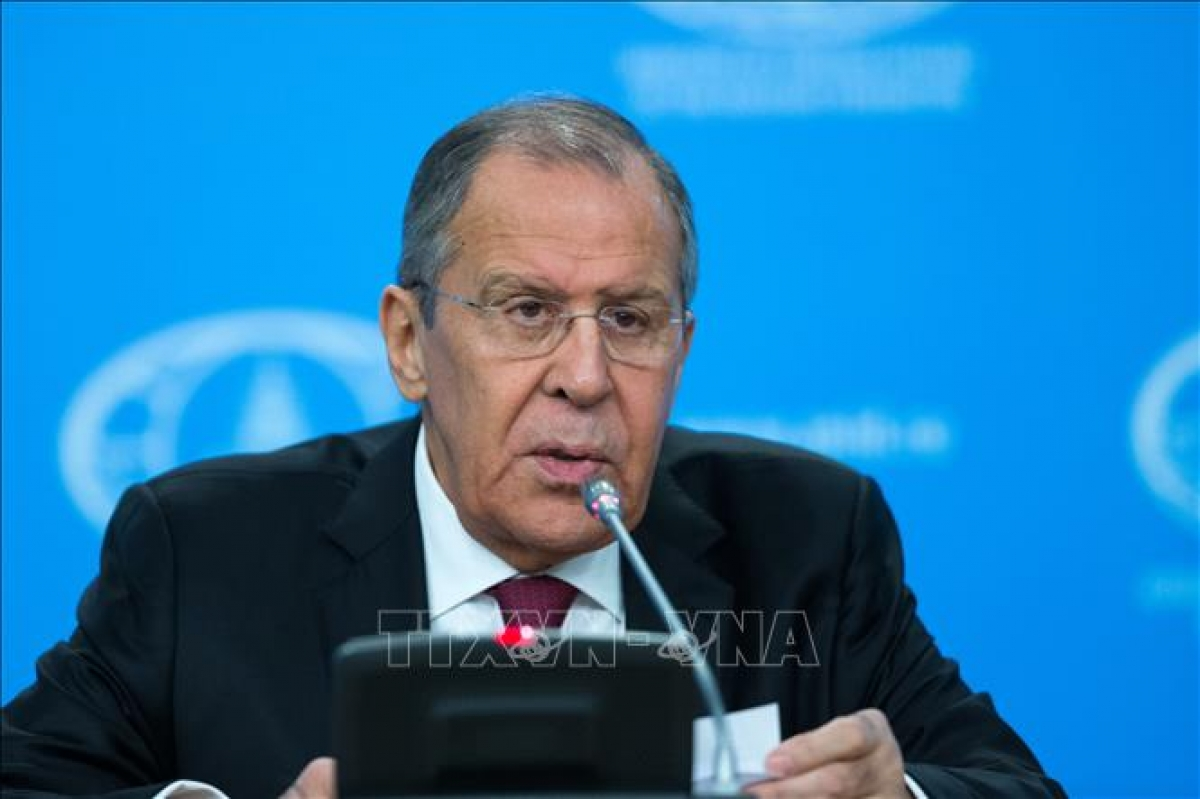 Ngoại trưởng Nga Sergei Lavrov tại cuộc họp báo ở Moskva, Nga. (Ảnh: TTXVN)