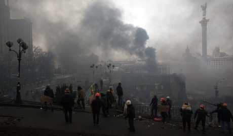 Người biểu tình bị bén lửa ở thủ đô Kiev, Ukraine