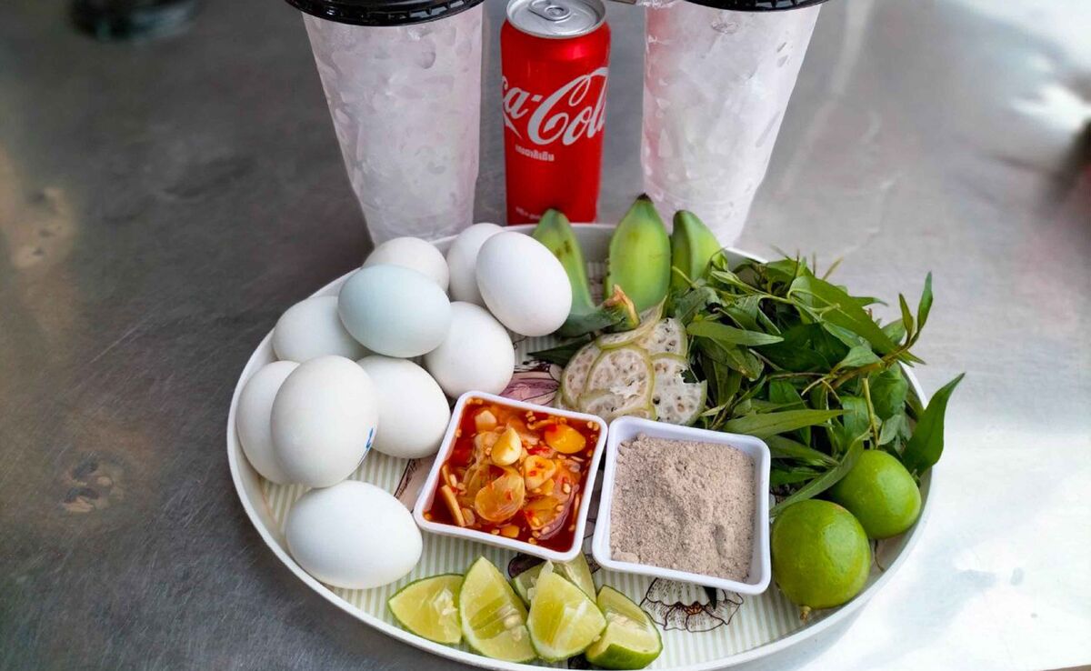 Tại Campuchia, trứng vịt lộn ăn với chanh, dấm, chuối xanh, uống cùng nước ngọt. (Ảnh: foodpand)