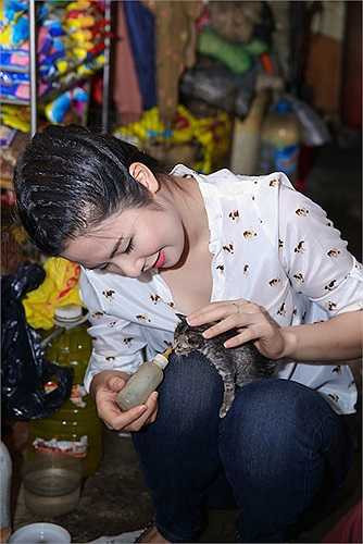 Ngọc Hân rất yêu quý động vật nên nhân chuyến công tác tại TP HCM vừa qua, cô tranh thủ ghé thăm bà và gửi tặng những món đồ gia dụng cần thiết, thực phẩm cũng như thăm hỏi, động viên bà cụ.