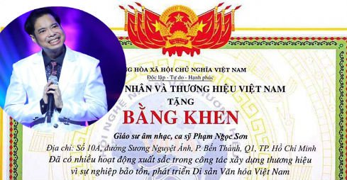 Đại diện ca sĩ Ngọc Sơn vừa có thông tin gửi báo chí cho biết: “Nam ca sĩ vui mừng khi được Hội Nghệ nhân và Thương hiệu Việt Nam tặng bằng khen vì có những hoạt động xuất sắc trong sự nghiệp bảo tồn, phát triển di sản văn hóa Việt Nam. Bằng khen này phong tặng cho anh danh hiệu Giáo sư âm nhạc".