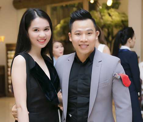 | Ngọc Trinh và Vũ Khắc Tiệp trong buổi từ thiện |
