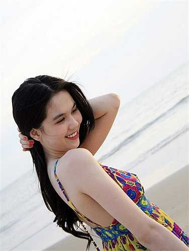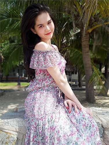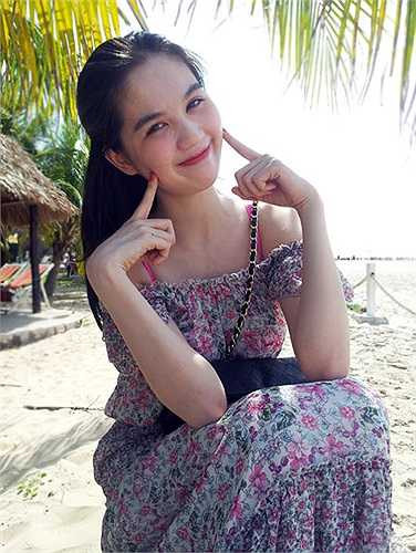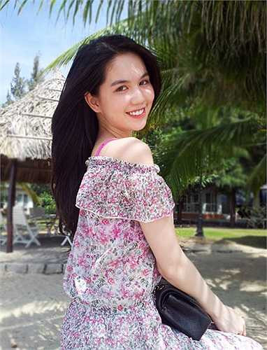 Trái ngược nét ngây thơ, khi để mặt mộc Ngọc Trinh không quá hoản hảo.