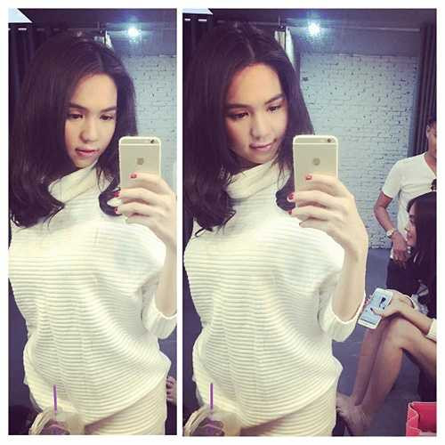 Cách tạo dáng khoe vẻ gợi cảm quen thuộc của Ngọc Trinh.