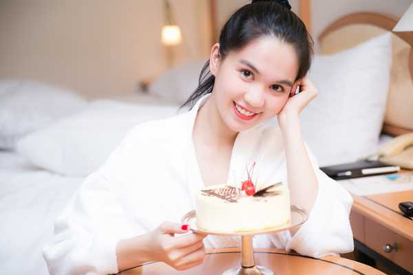 Ngọc Trinh mặc đồ ngủ, thổi nến đón tuổi mới.